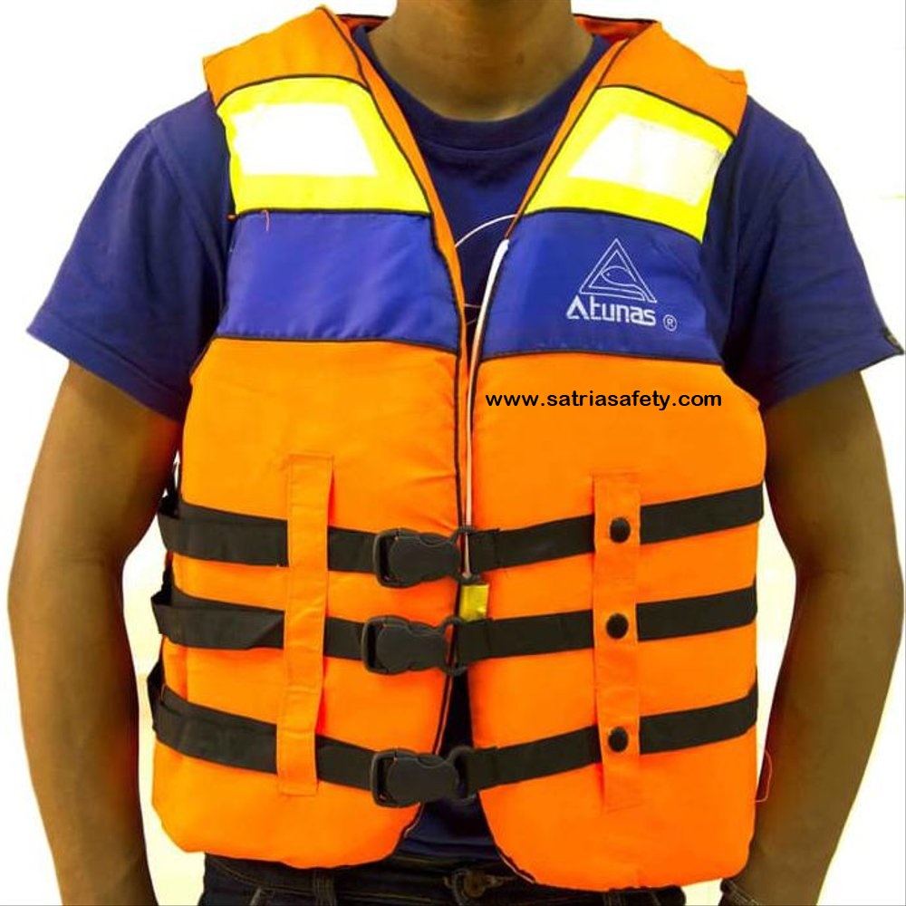 Jaket Pelampung Atunas adalah Alat Keselamatan Pribadi (Personal Safety Equipment) yang populer, dirancang untuk memberikan daya apung yang andal dan terjangkau di berbagai kegiatan air. Fungsi utamanya adalah menjaga pengguna tetap terapung, khususnya bagi mereka yang tidak mahir berenang atau saat beraktivitas di perairan tenang seperti danau, sungai, atau kolam renang. Jaket pelampung Atunas ideal digunakan untuk kegiatan rekreasi air, arung jeram, atau sebagai perlengkapan dasar kapal nelayan kecil. Manfaat utama penggunaannya adalah memberikan rasa aman bagi pengguna dan mencegah risiko tenggelam, menjadikannya pilihan praktis untuk keluarga dan kegiatan liburan air.