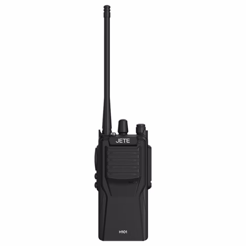 JETE H101 dikembangkan dengan mengutamakan kualitas audio dan daya tahan baterai. HT ini menghasilkan suara yang jernih dan lantang berkat speaker berkualitas tinggi, memastikan pesan tersampaikan dengan jelas di lingkungan yang bising. Baterai tanam Li-ion berkapasitas besar menjamin penggunaan yang lama dan standby yang handal sepanjang hari kerja. Desainnya yang kompak, ringan, dan ergonomis menjadikannya nyaman untuk dibawa dan dioperasikan. Kualitas konstruksi yang solid juga menjamin perangkat ini mampu bertahan dalam penggunaan sehari-hari yang intens.